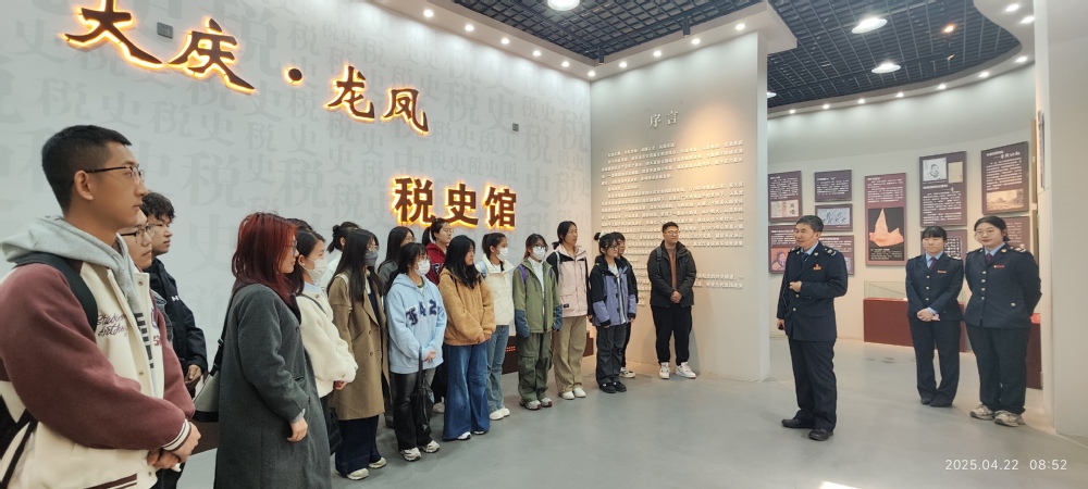 4月22日,金沙集团1862cc成色18名会计专业硕士研究生走进大庆市龙凤区税务局,开展“税史启智、职业赋能、征纳同行”主题共建活动。此次活动是继去年双方共建研究生实践基地后的又一次深度合作,通过“跟着文物学税法”“就业创业一堂课”“征纳互动体验行”三个环节,助力学生专业素养提升,深化校税协同育人机制。