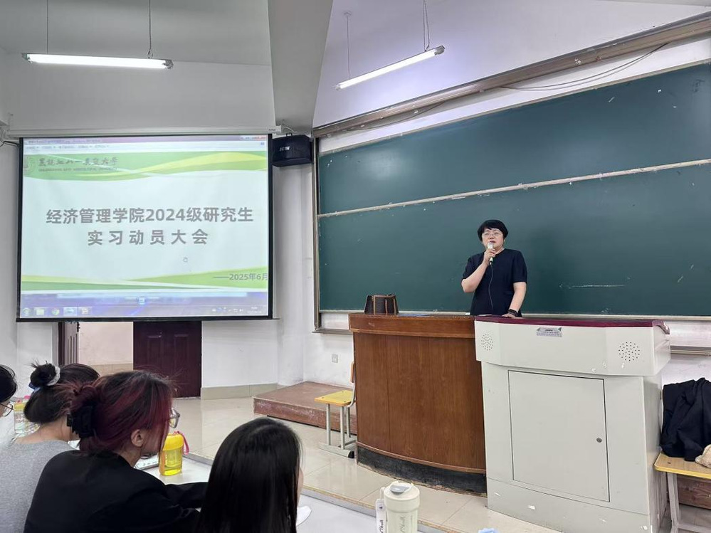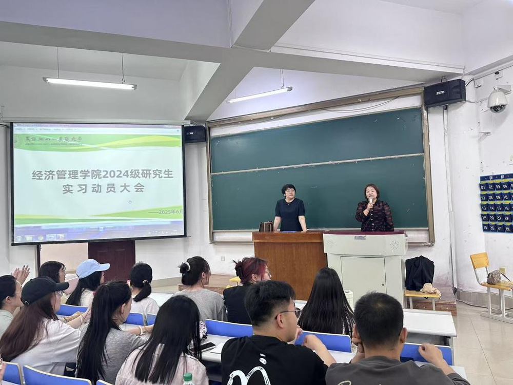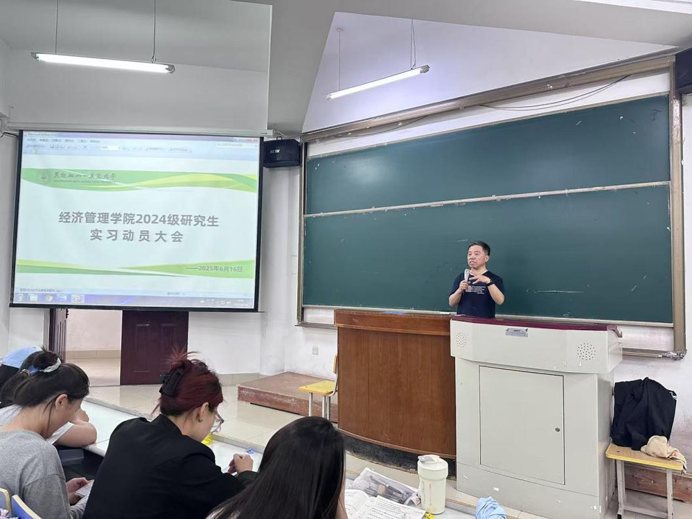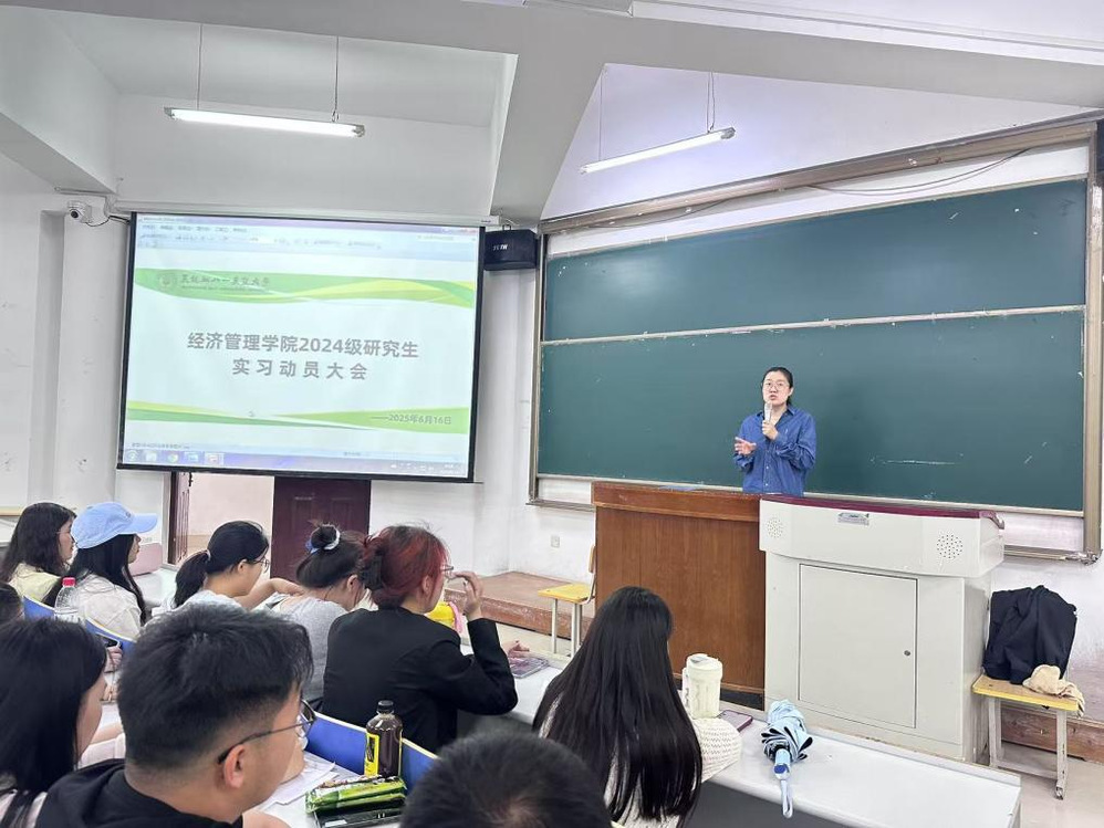 徐素波对实习进行整体部署。她表示,专业实习是研究生培养的重要环节,是连接理论学习与实际应用的关键桥梁,希望同学们珍惜机会,在实践中增长才干,并结合当前就业形势和行业发展需求提出四点要求:一是严守纪律,服从管理,遵守实习单位规章制度,展现经管学子良好风貌;二是学以致用,提升能力,将课堂所学应用于实践,培养解决实际问题的能力;三是善于思考,找准选题,在实习中挖掘研究问题,为毕业论文奠定实践基础;四是强化意识,确保安全,始终把人身安全放在首位,严格遵守操作规程。徐素波特别叮嘱,安全是实习工作的首要前提,同学们要增强自我保护意识,确保平安顺利完成实习任务。