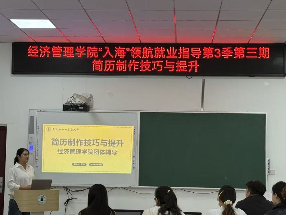 9月29日,金沙集团1862cc成色在主楼附楼129室开展“入海”领航就业指导课堂第三季第三期活动。本次活动以“简历制作技巧与提升”为核心主题,特邀校招生就业处专职指导教师王东担任主讲人,面向2026届毕业生开展专题培训。