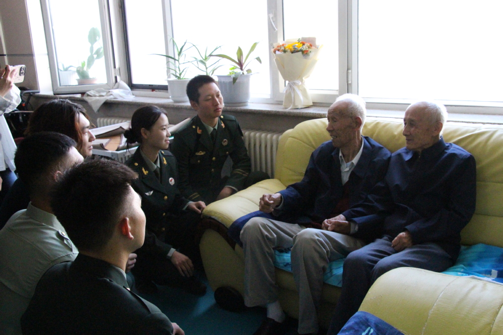 9月27日,12名退役大学生士兵走进大庆市第二福利院探访刘宝真、王相义两位抗美援朝老战士,以敬献鲜花、送上手写信的方式,向老前辈致以最诚挚的敬意与感恩。他们围坐于老战士身旁,静静聆听那段硝烟弥漫的战斗往事,深刻感悟先辈对党忠诚的信念与保家卫国的担当。