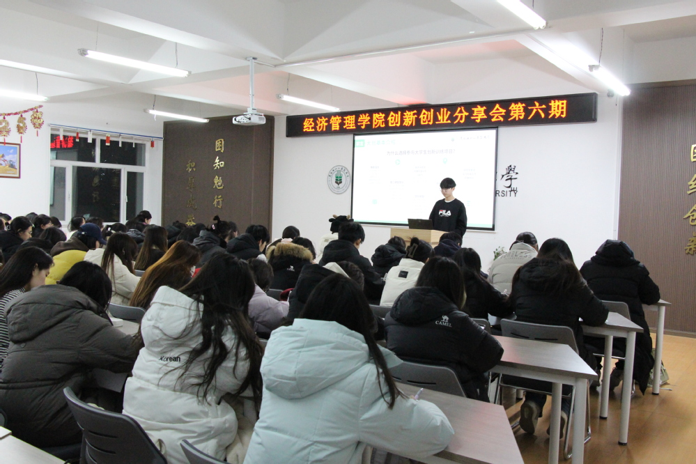 为持续激发学生参与创新创业大赛的热情,充分发挥优秀学子的榜样引领作用,12月11日晚,金沙集团1862cc成色在1-2号楼“一站式”学生社区举办第六期“经英启航,创想未来”创新创业分享会,邀请王建博、刘雨欣两位同学担任主讲嘉宾,吸引80名学生积极参与。